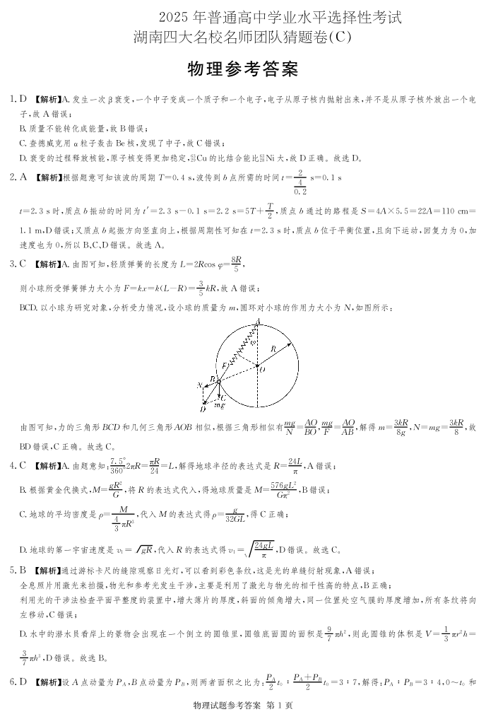湖南省四大名校名师团队猜题卷(C)物理答案.pdf