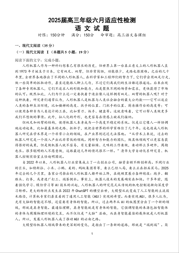 湖北省荆州市沙市中学2025届高三年级六月适应性检测 语文.docx