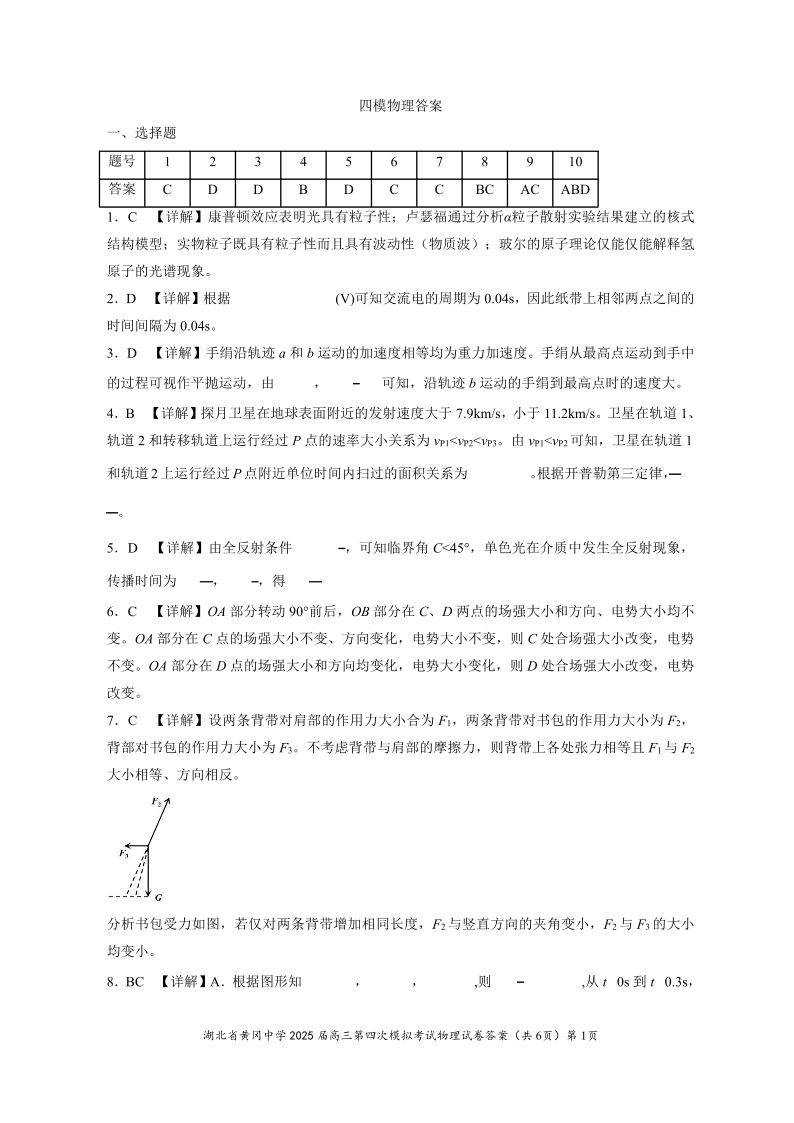 湖北省黄冈中学2025届高三第四次模拟考试 物理答案.pdf
