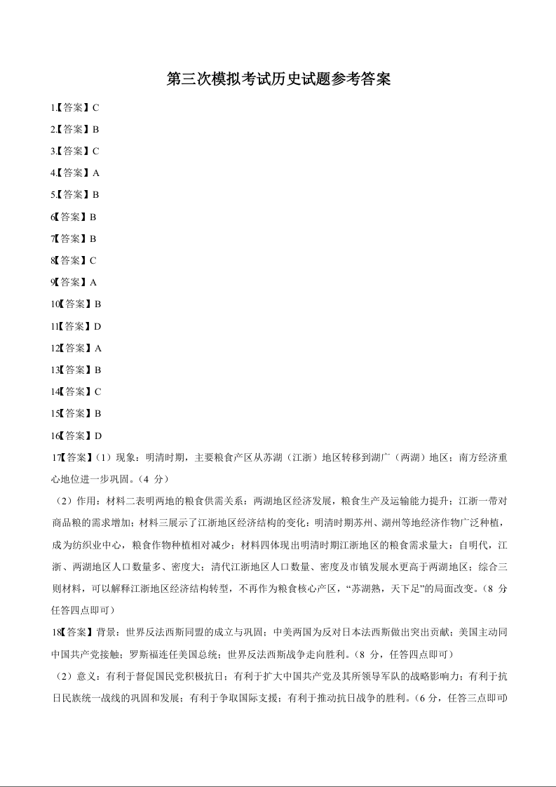 南阳市第一中2025年春期高三年级第三次模拟考试 历史答案.docx