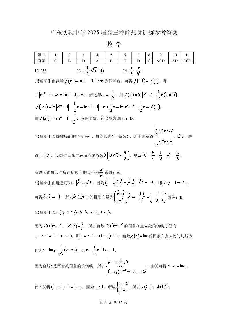 广东实验中学2025届高三考前热身训练 数学参考答案.docx