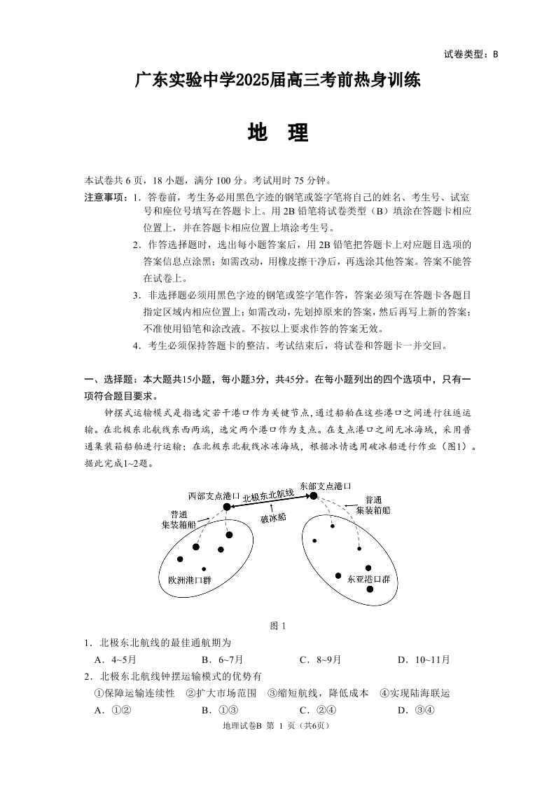 广东实验中学2025届高三考前热身训练 地理.pdf