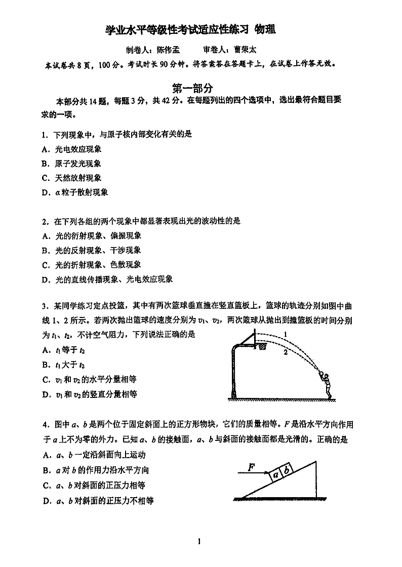 北京人大附中2025届高三考前适应性练习 物理试题(含答案).pdf