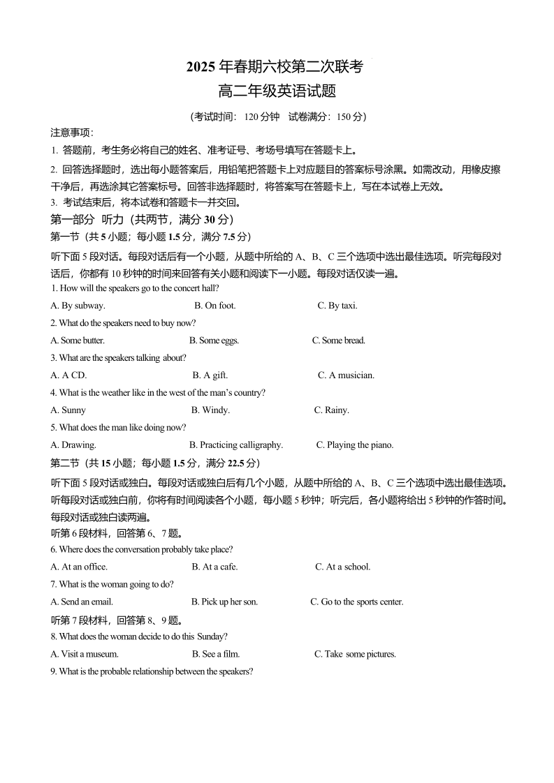 河南省南阳市2025年春期六校高二年级第二次联考 英语试卷(含答案).pdf