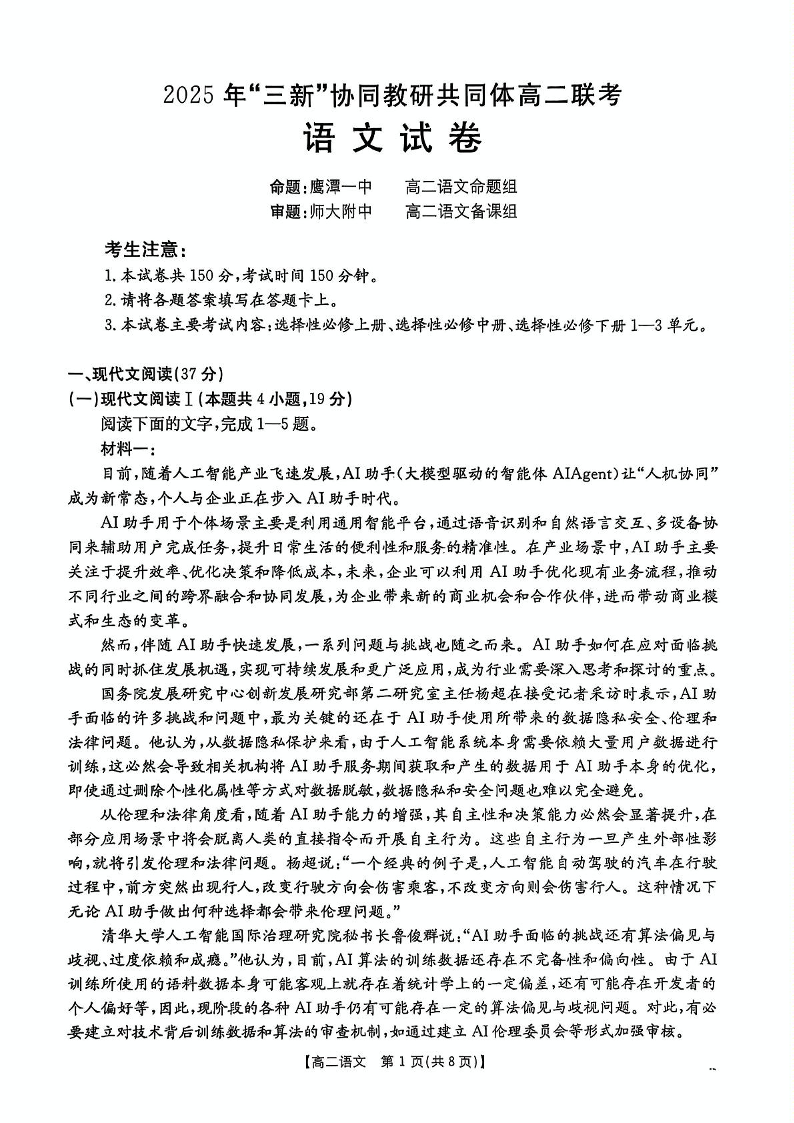 江西省2025年“三新”协同教研共同体高二联考 语文试卷(含答案).pdf