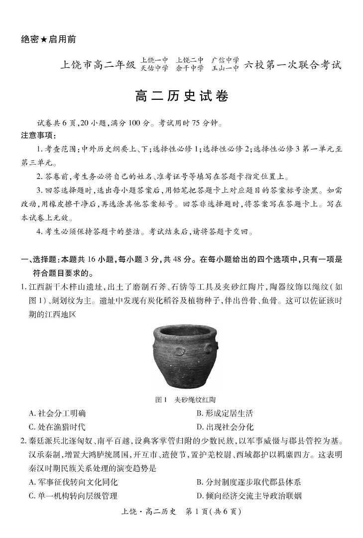 江西省上饶市六校2024-2025学年高二下学期第一次联合考试 历史试卷(含答案).pdf