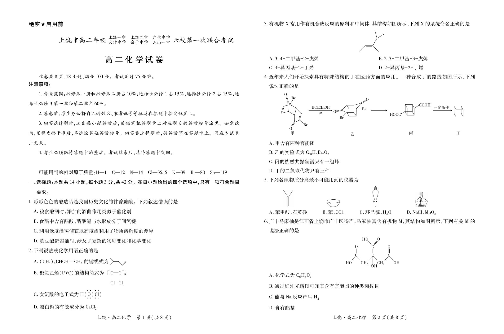 江西省上饶市六校2024-2025学年高二下学期第一次联合考试 化学试卷(含答案).pdf