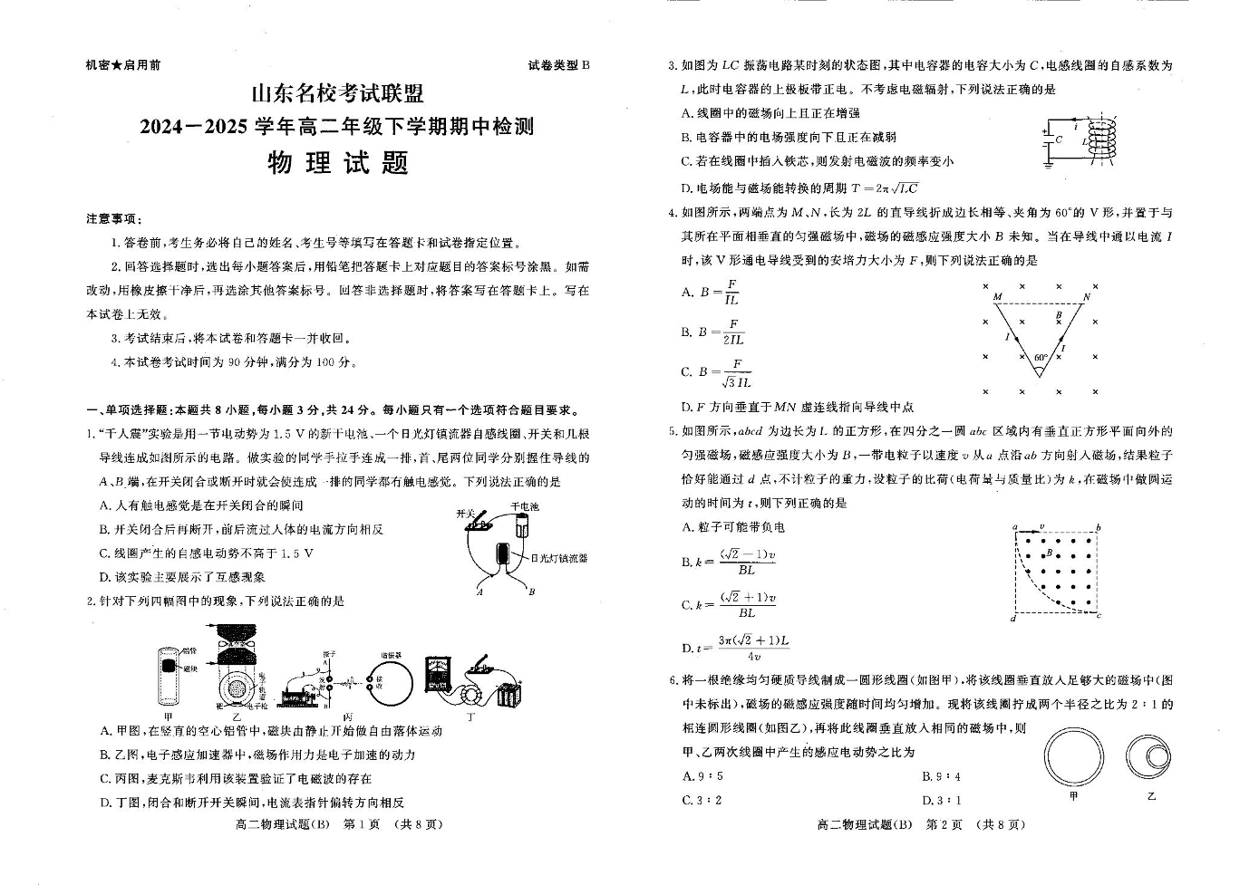 山东名校考试联盟2024-2025学年高二年级下学期期中检测 物理试卷(B)(含答案).pdf
