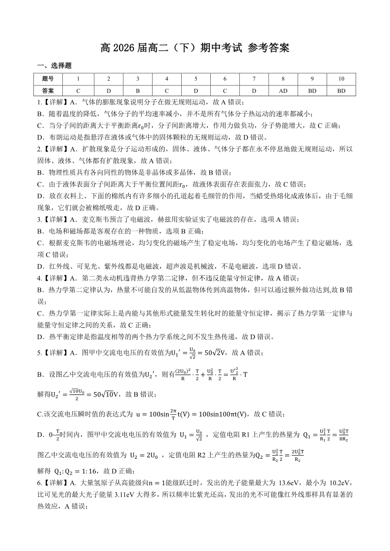 巴蜀中学高二下半期 物理答案.pdf