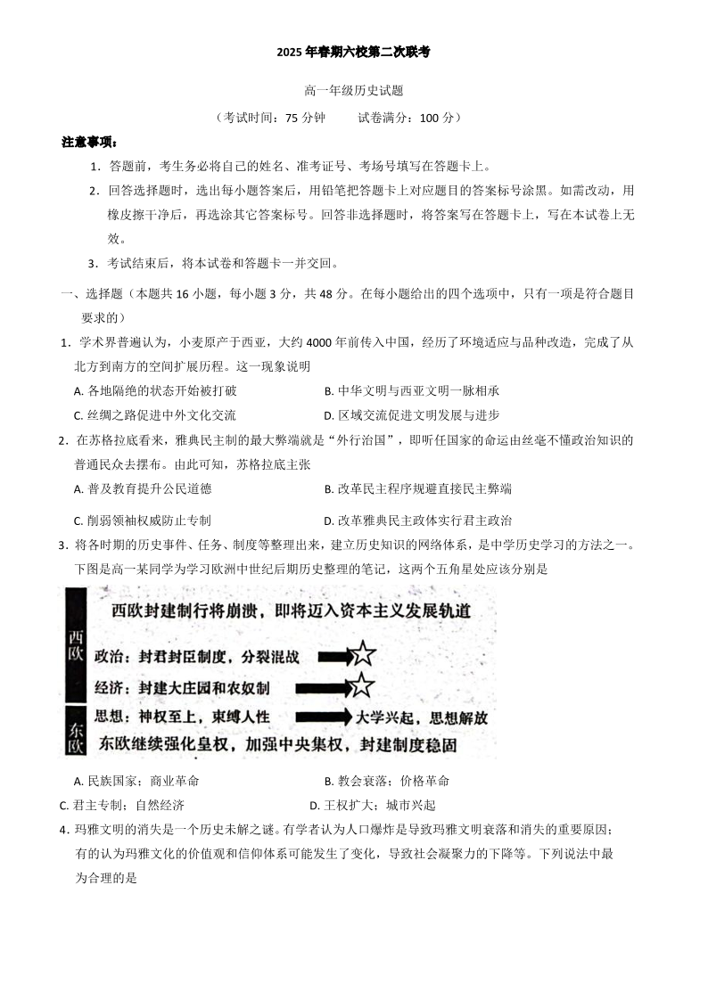 河南省南阳市2025年春期六校高一年级第二次联考 历史试卷(含答案).pdf