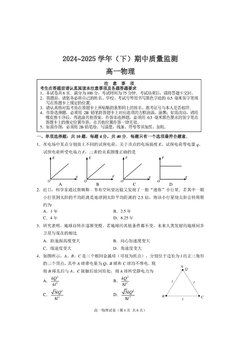江苏省镇江市丹阳市、南通市2024-2025学年高一下学期期中考试 物理试卷(含答案).pdf