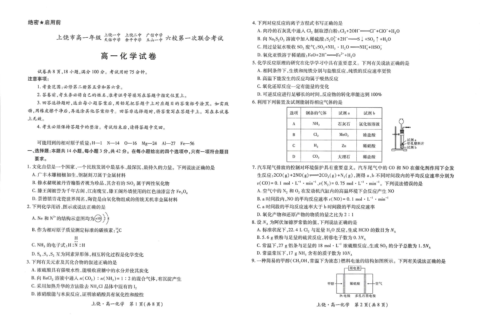 江西省上饶市六校2024-2025学年高一下学期第一次联合考试 化学试卷(含答案).pdf