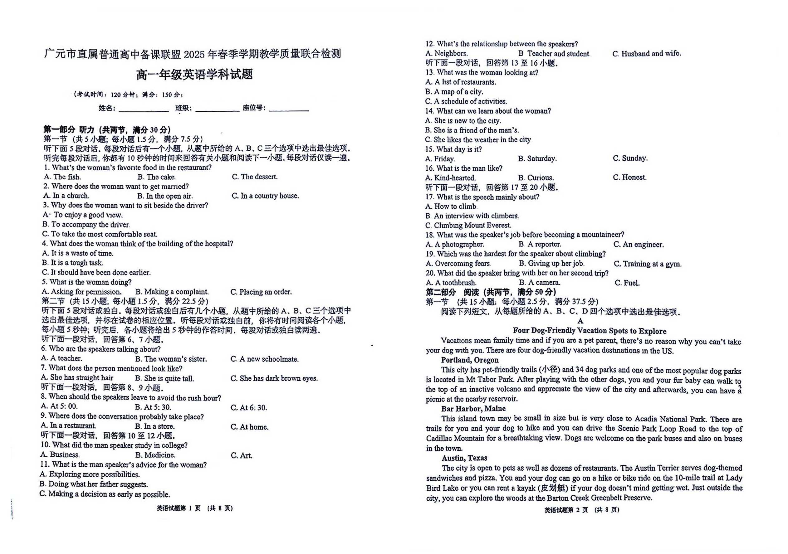四川省广元市直属普通高中2024-2025学年高一下学期期中考试 英语试卷(含答案).pdf