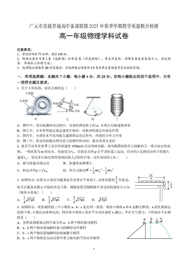四川省广元市直属普通高中2024-2025学年高一下学期期中考试 物理试卷(含答案).pdf