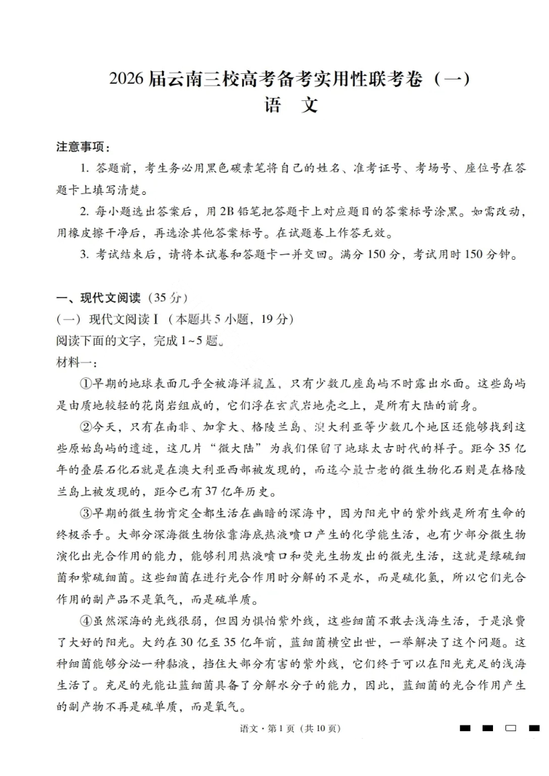 2026届云南三校高考备考实用性联考卷(一)语文试卷+答案.pdf