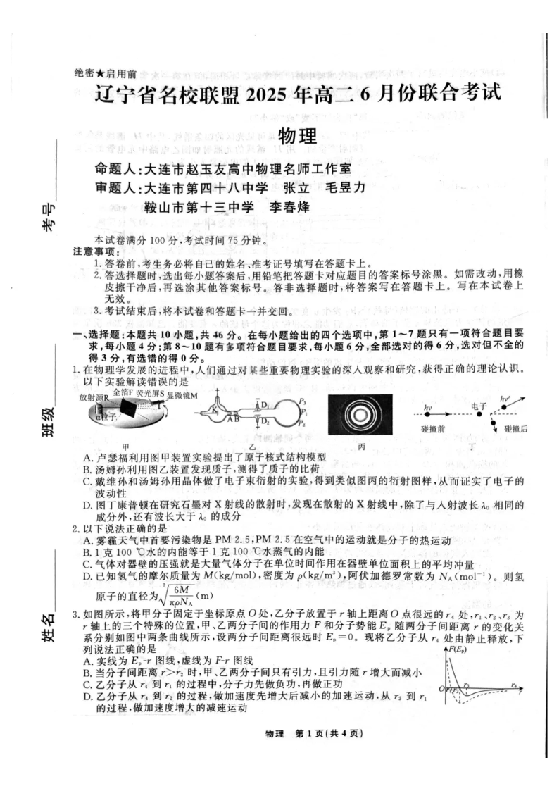 辽宁省名校联盟2025年高二6月份联合考试 物理试卷(含答案).pdf
