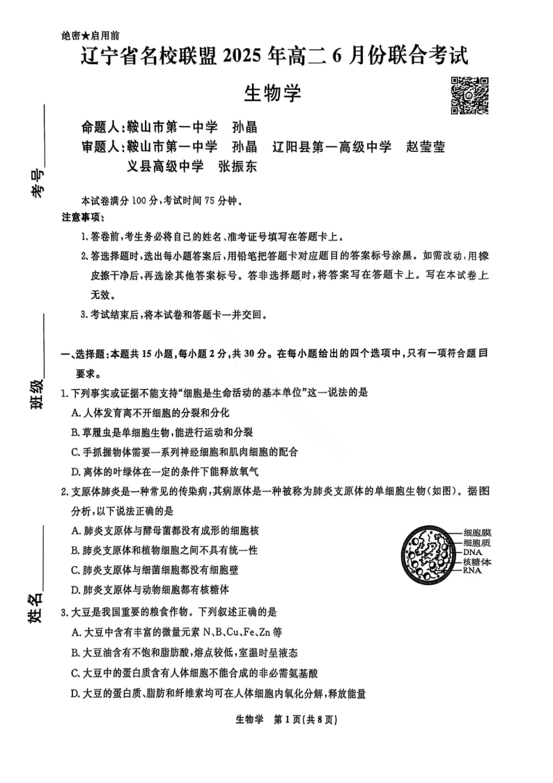 辽宁省名校联盟2025年高二6月份联合考试 生物试卷(含答案).pdf