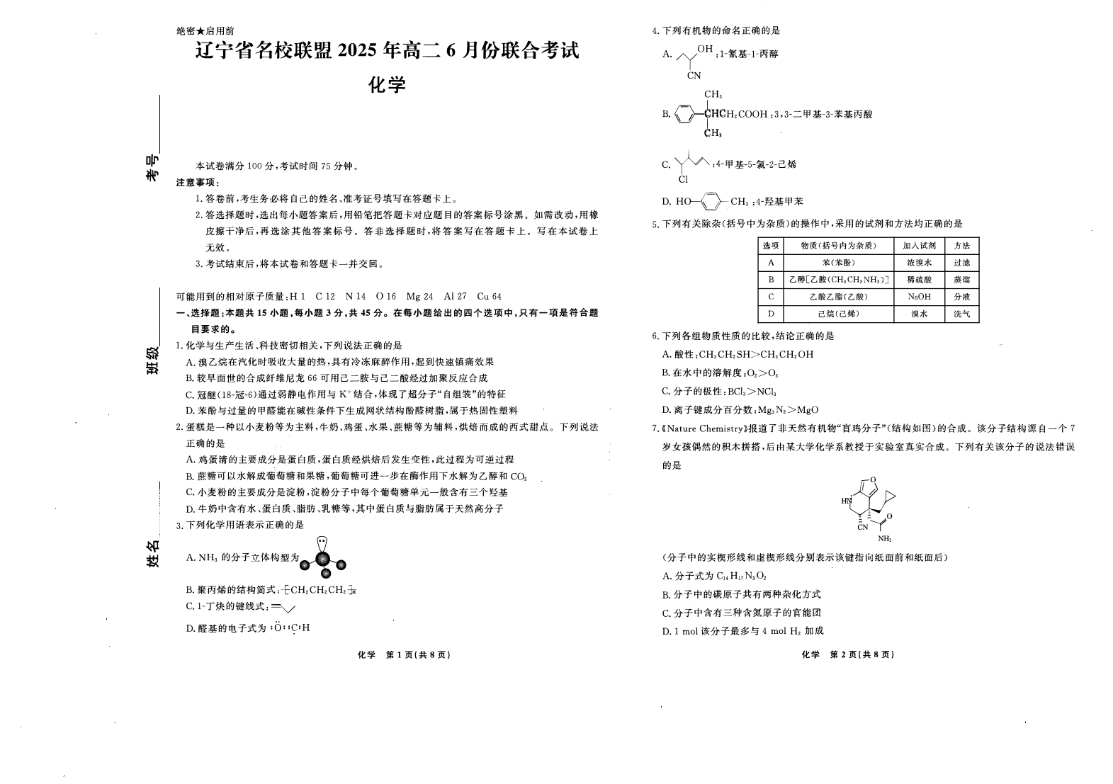 辽宁省名校联盟2025年高二6月份联合考试 化学试卷(含答案).pdf