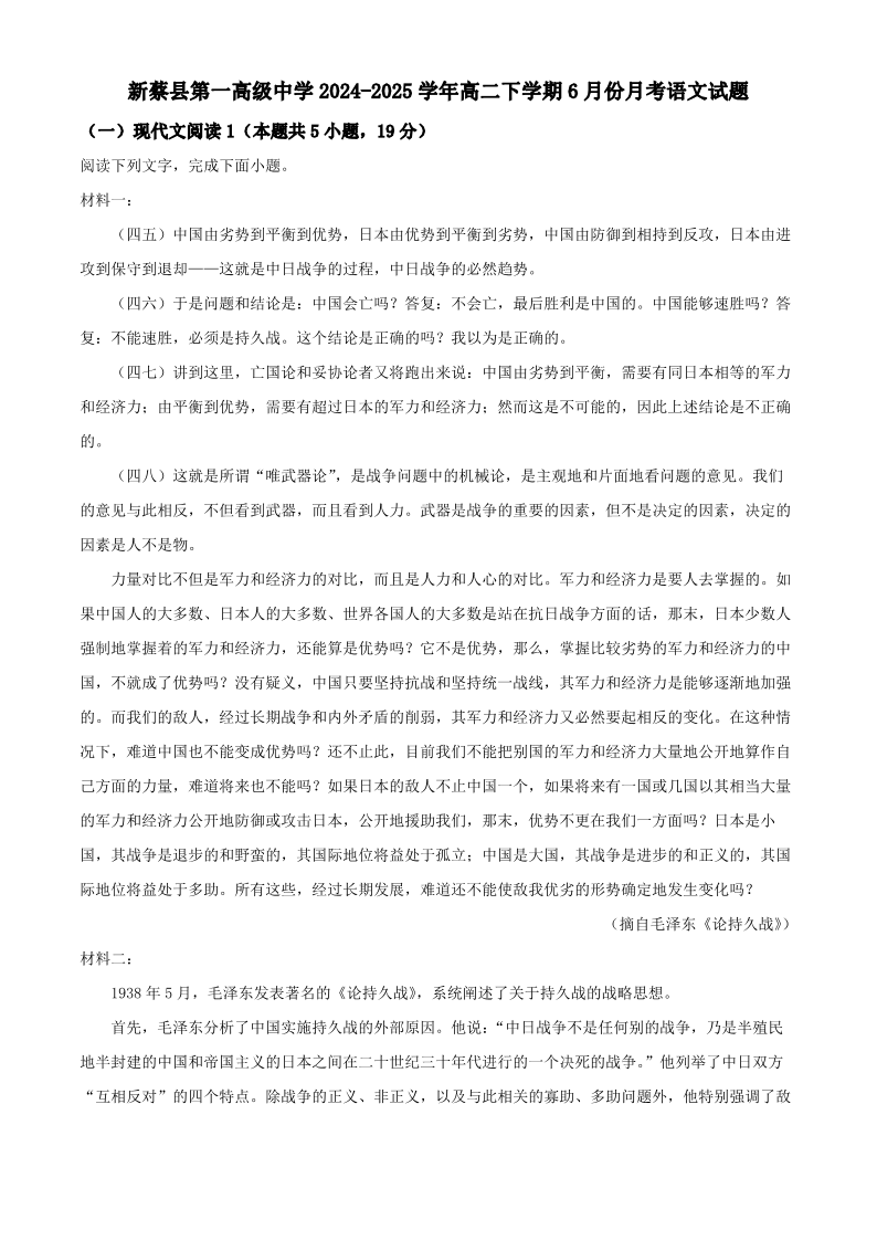 新蔡第一高级中学2024-2025学年高二下学期6月月考 语文试题(含答案).pdf