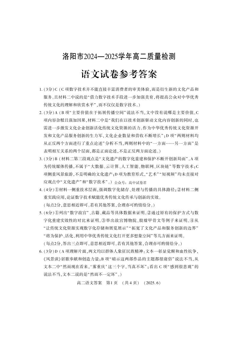 洛阳2024-2025学年6月高二质量检测-语文答案.pdf