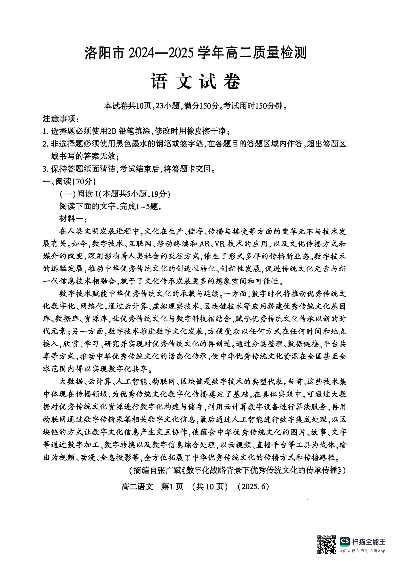 洛阳2024-2025学年6月高二质量检测-语文.pdf