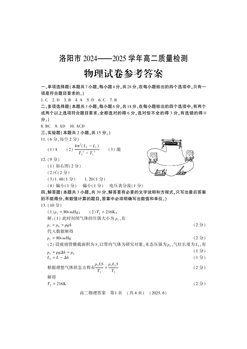 洛阳2024-2025学年6月高二质量检测-物理答案.pdf