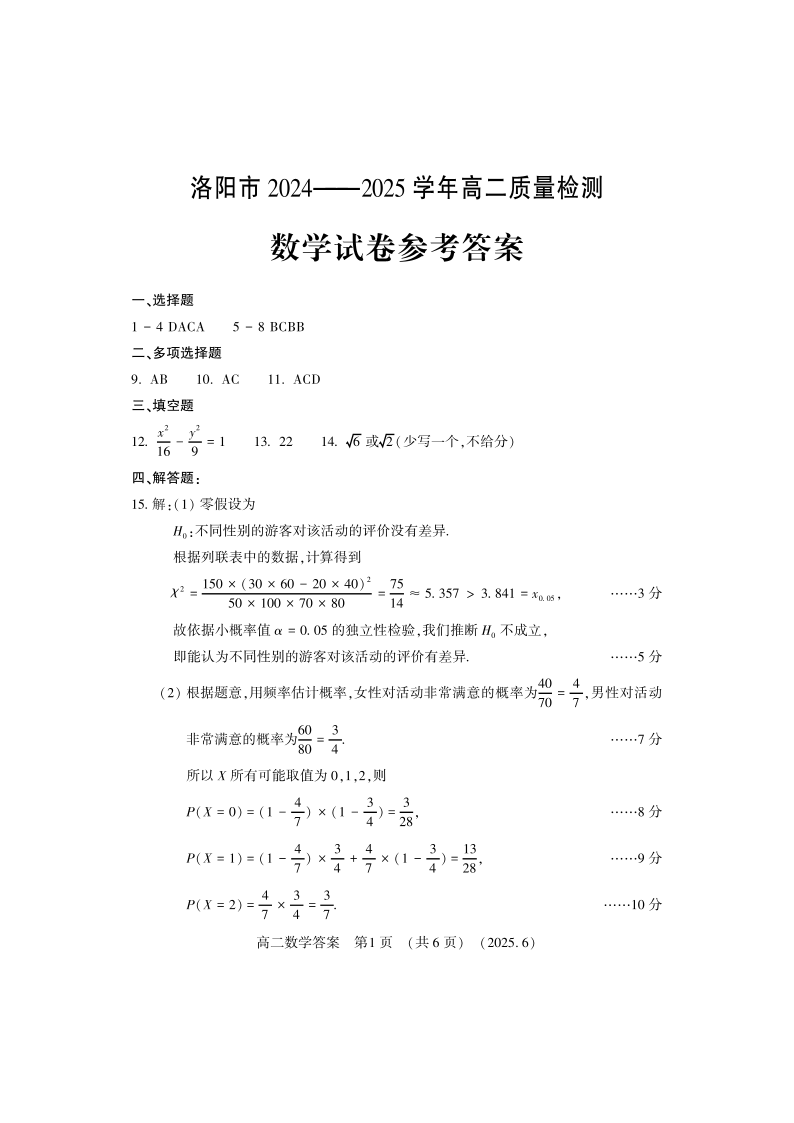 洛阳2024-2025学年6月高二质量检测-数学答案.pdf