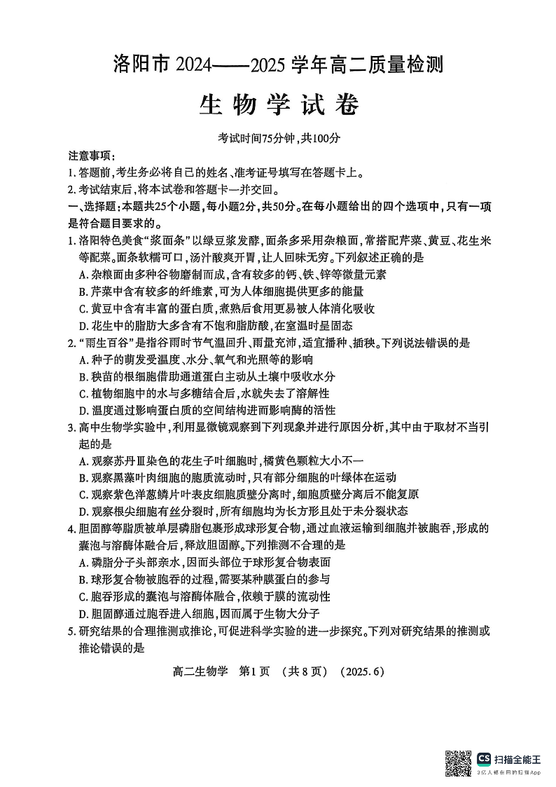 洛阳2024-2025学年6月高二质量检测-生物.pdf