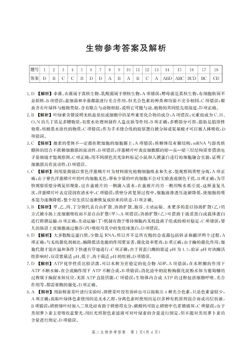 河北省2024-2025学年高二下学期期末模拟检测 生物答案.pdf