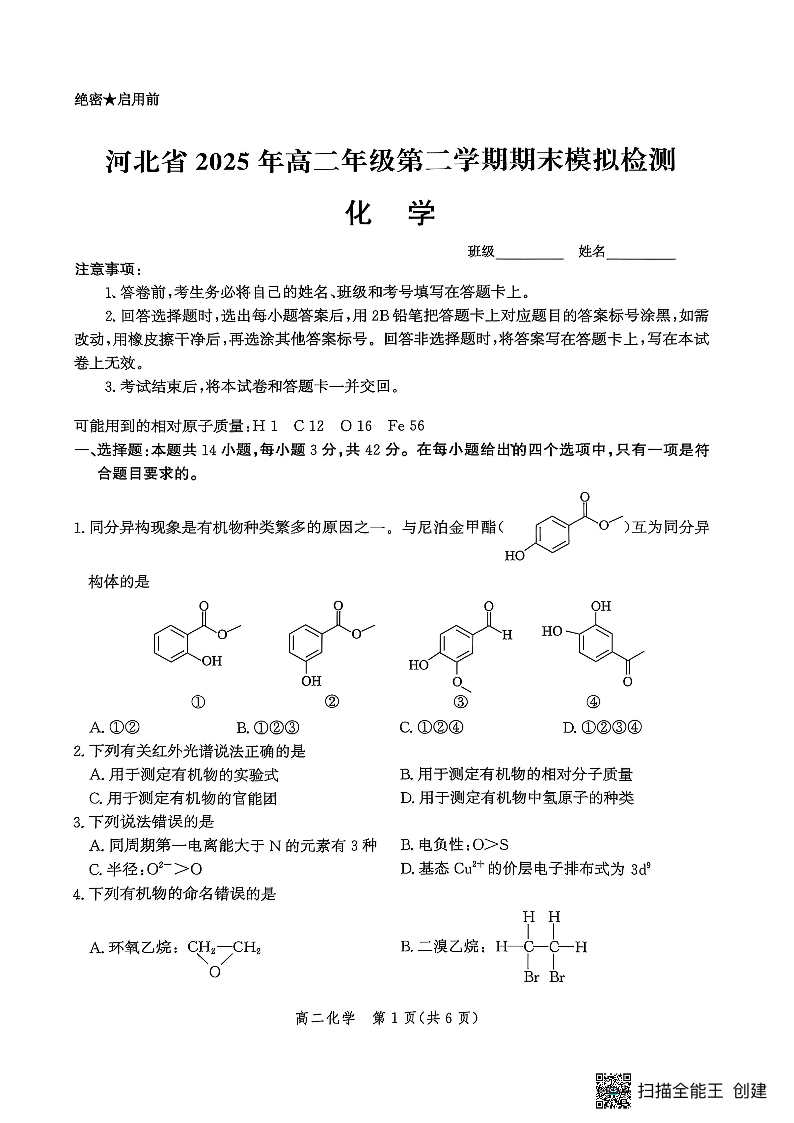 河北省2024-2025学年高二下学期期末模拟检测 化学试题(含答案).pdf
