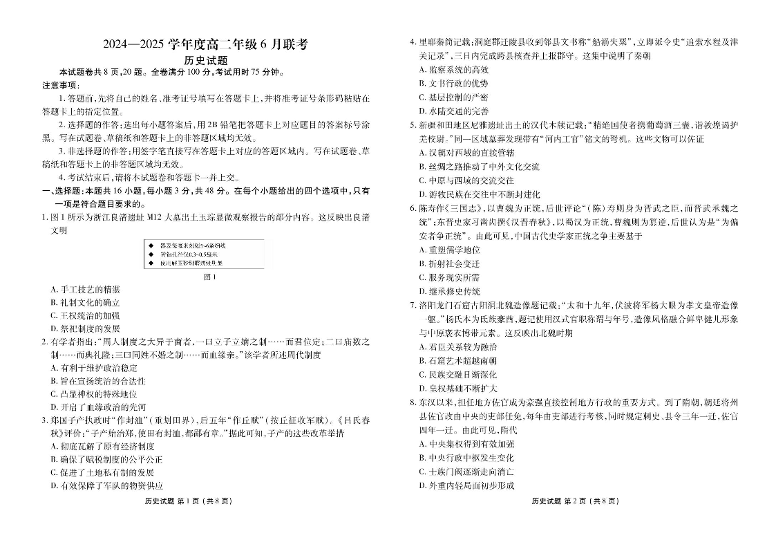衡水金卷2024-2025学年度高二年级6月联考 历史试题(含答案).pdf