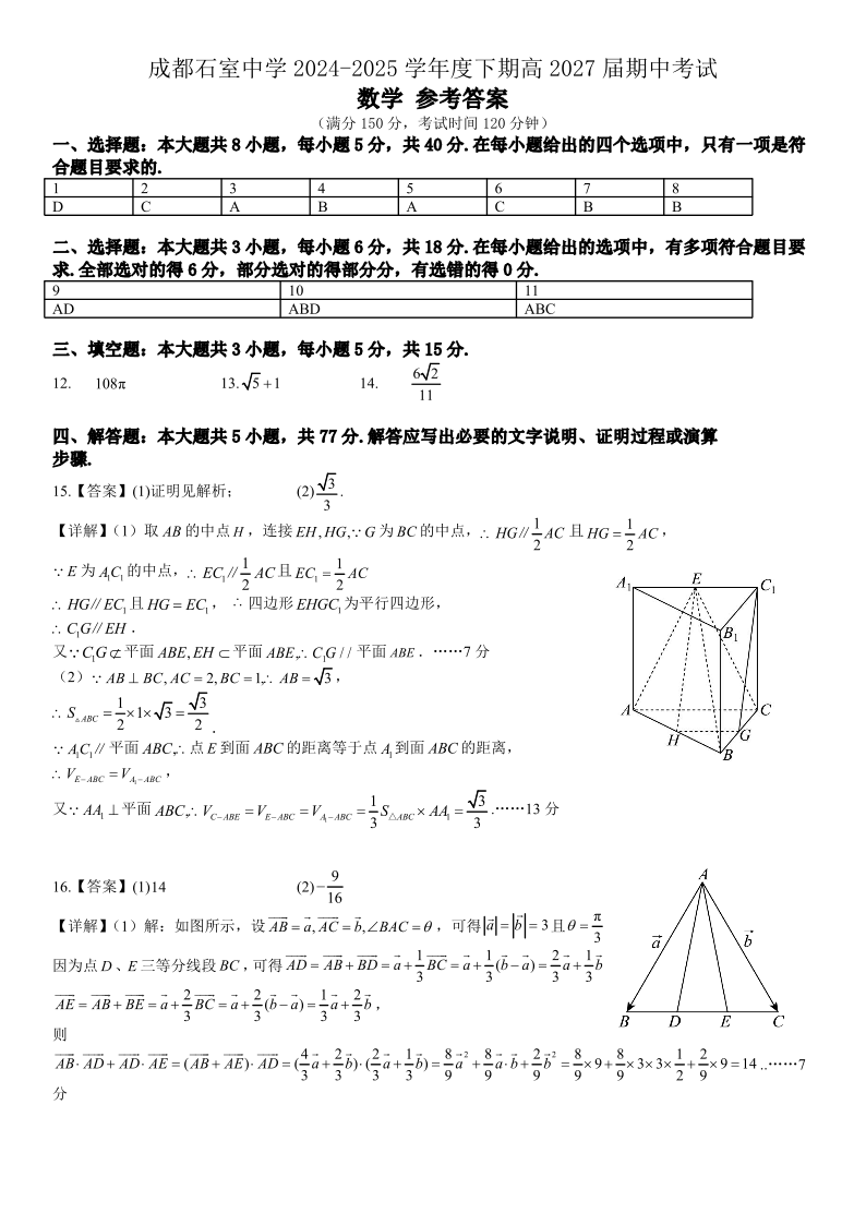 成都石室中学2024-2025学年度下期高2027届期中考试 数学答案.pdf