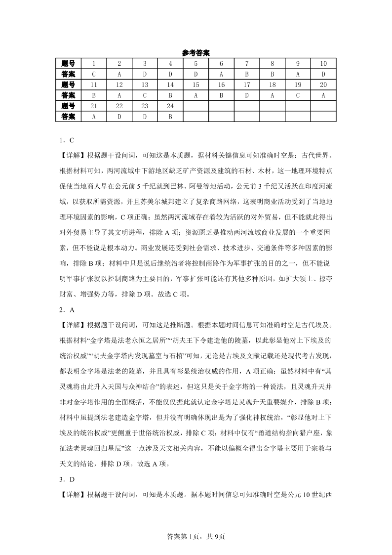 成都石室中学2024-2025学年度下期高2027届期中考试 历史答案.pdf