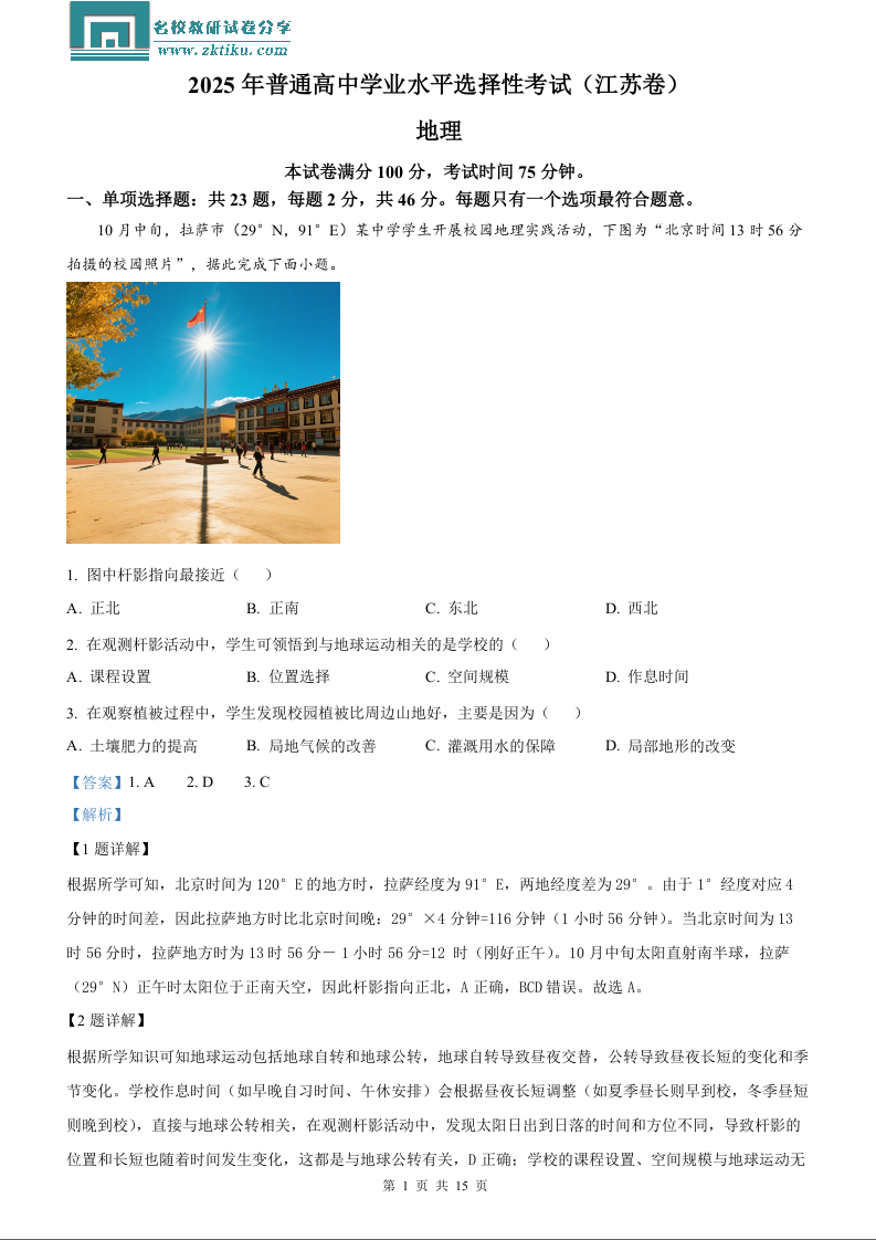 2025年江苏高考地理真题(含解析).docx