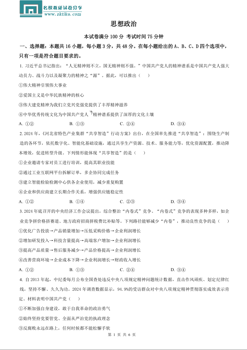 2025年河北高考政治试题.docx