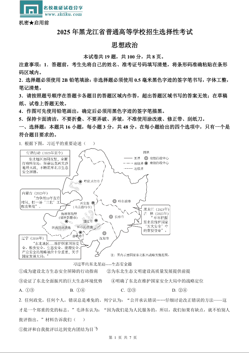 2025年黑龙江、吉林、辽宁、内蒙古高考政治真题.docx