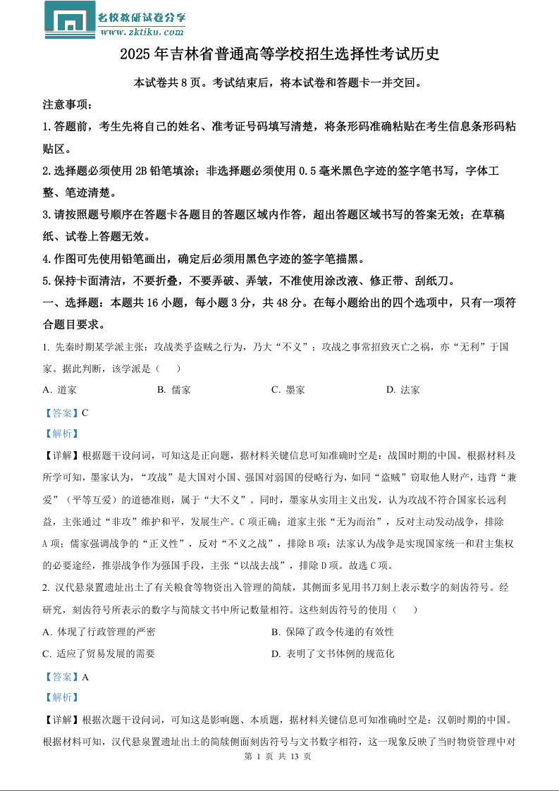 2025年黑龙江、吉林、辽宁、内蒙古高考历史真题(含解析).docx