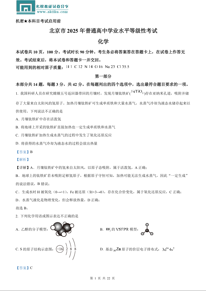 2025年北京高考真题化学试题(含解析).docx
