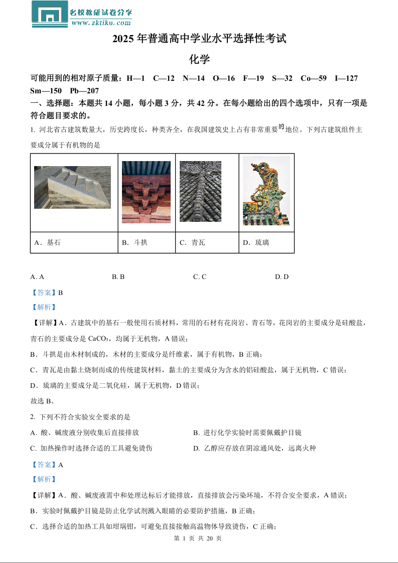 2025年河北高考真题化学试题(含解析).docx