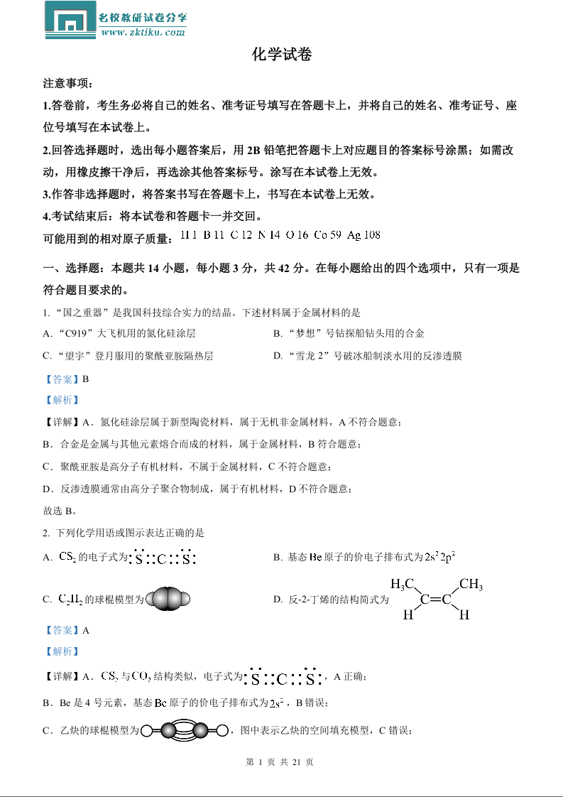 2025年陕西、山西、宁夏、青海高考真题化学试题(含解析).docx