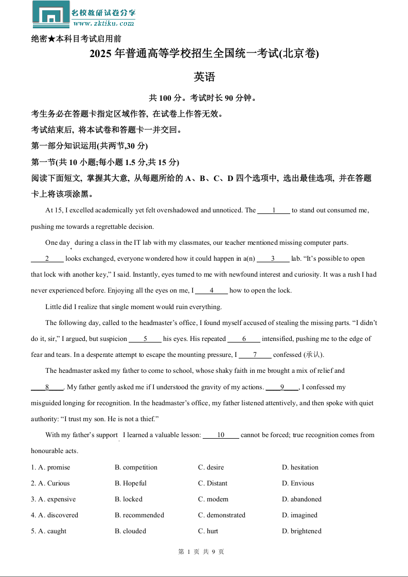 2025年高考北京卷英语真题.docx