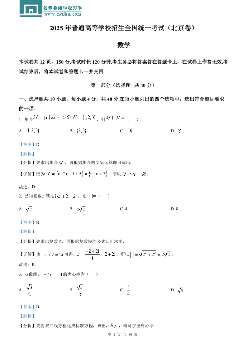 2025年高考北京数学真题(含解析).docx