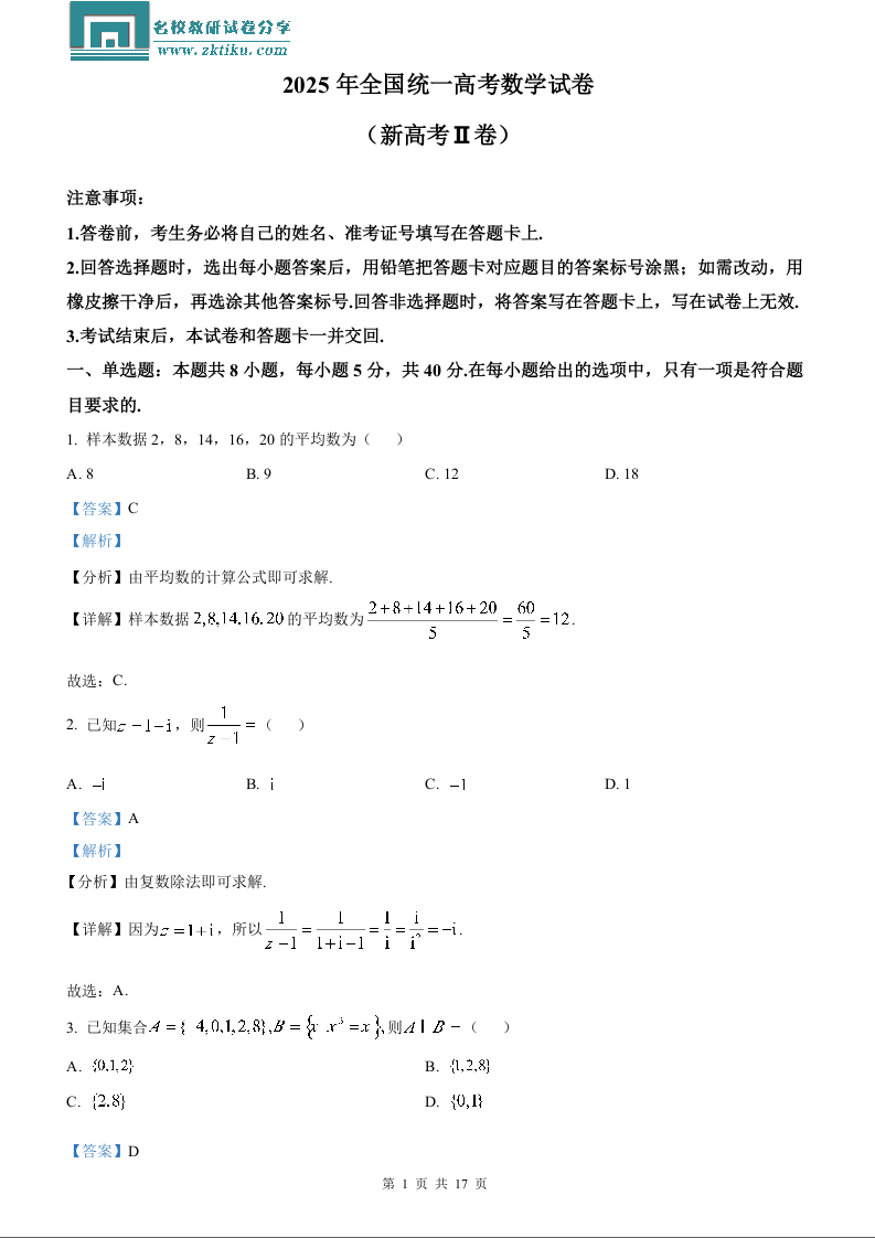 2025年高考全国二卷数学真题(含解析).docx