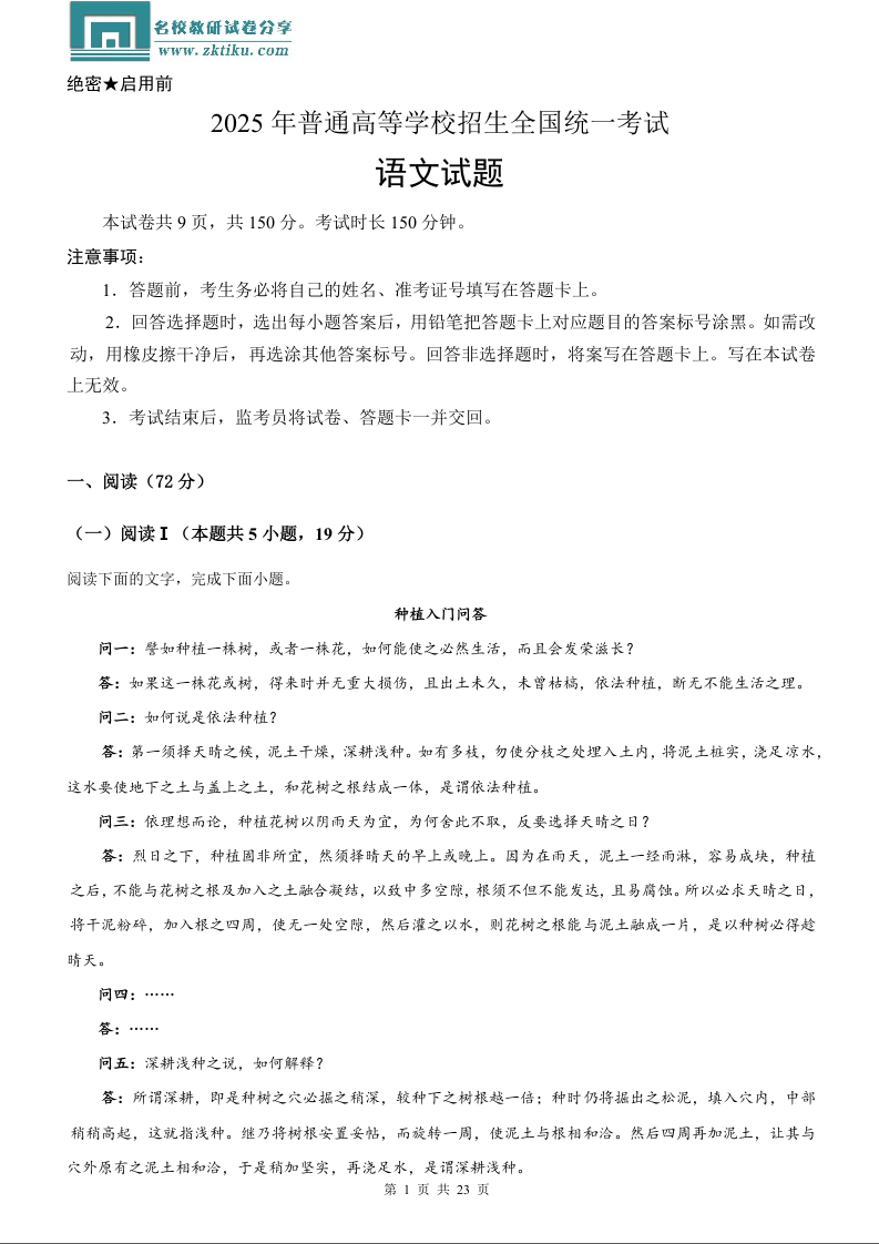 2025高考全国一卷语文(含解析).docx