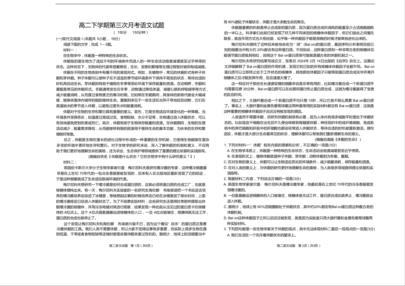 山东省菏泽第一中学2024-2025学年高二下学期第三次月考 语文试卷(含答案).docx