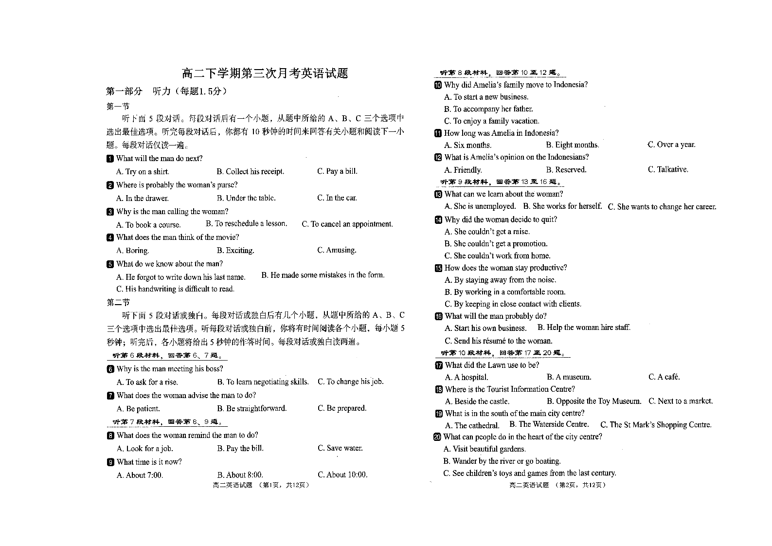 山东省菏泽第一中学2024-2025学年高二下学期第三次月考 英语试卷(含答案).pdf