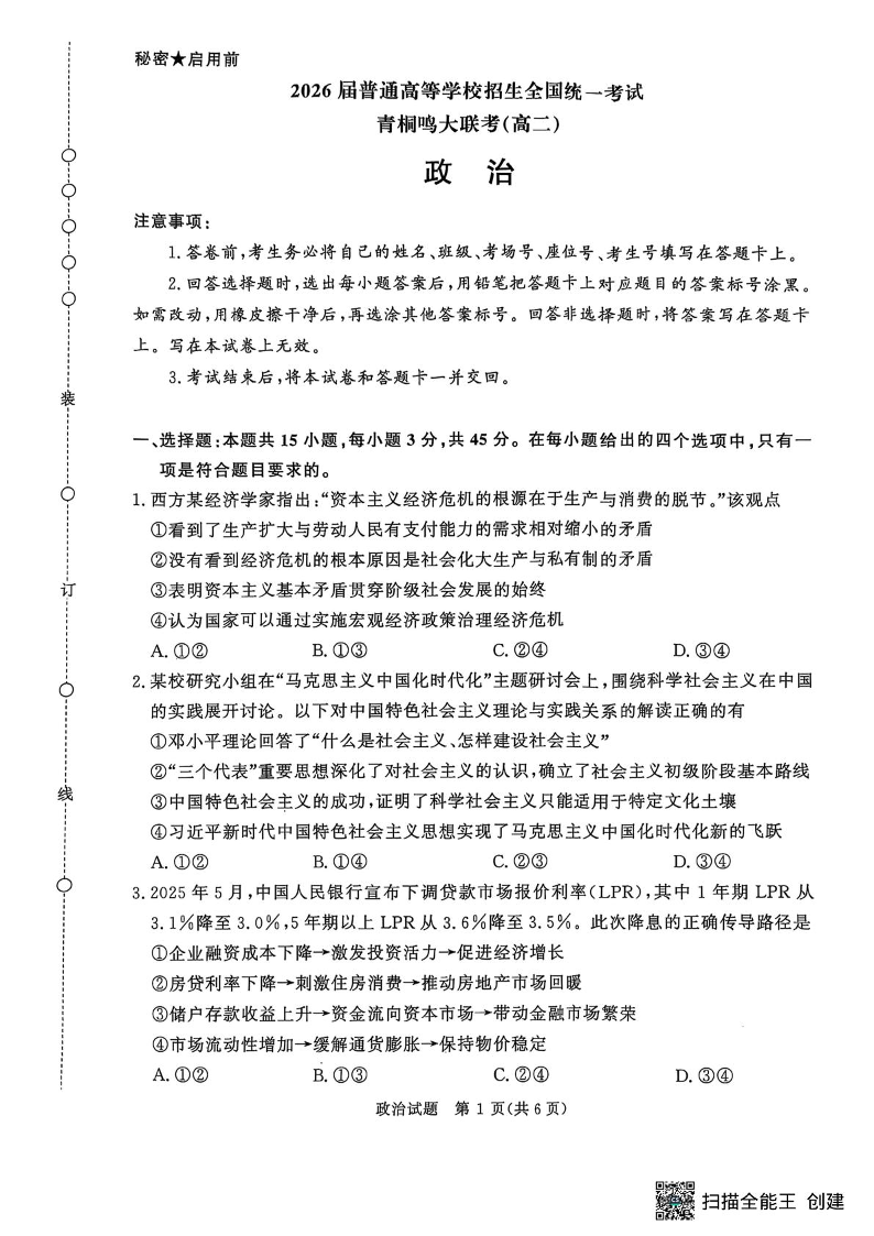 河南省青桐鸣大联考2025年6月高二下学期月考 政治.pdf