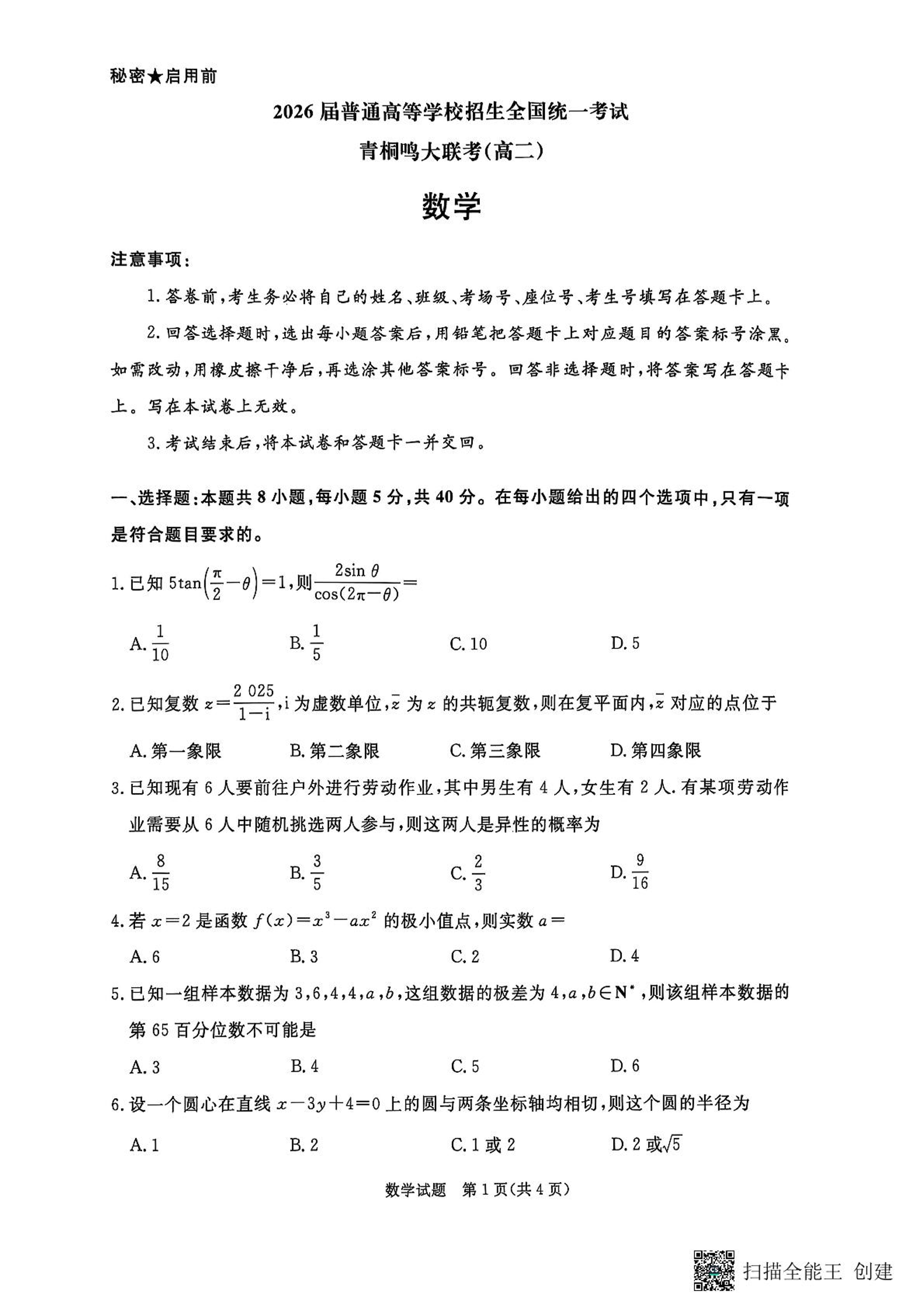 河南省青桐鸣大联考2025年6月高二下学期月考 数学.pdf