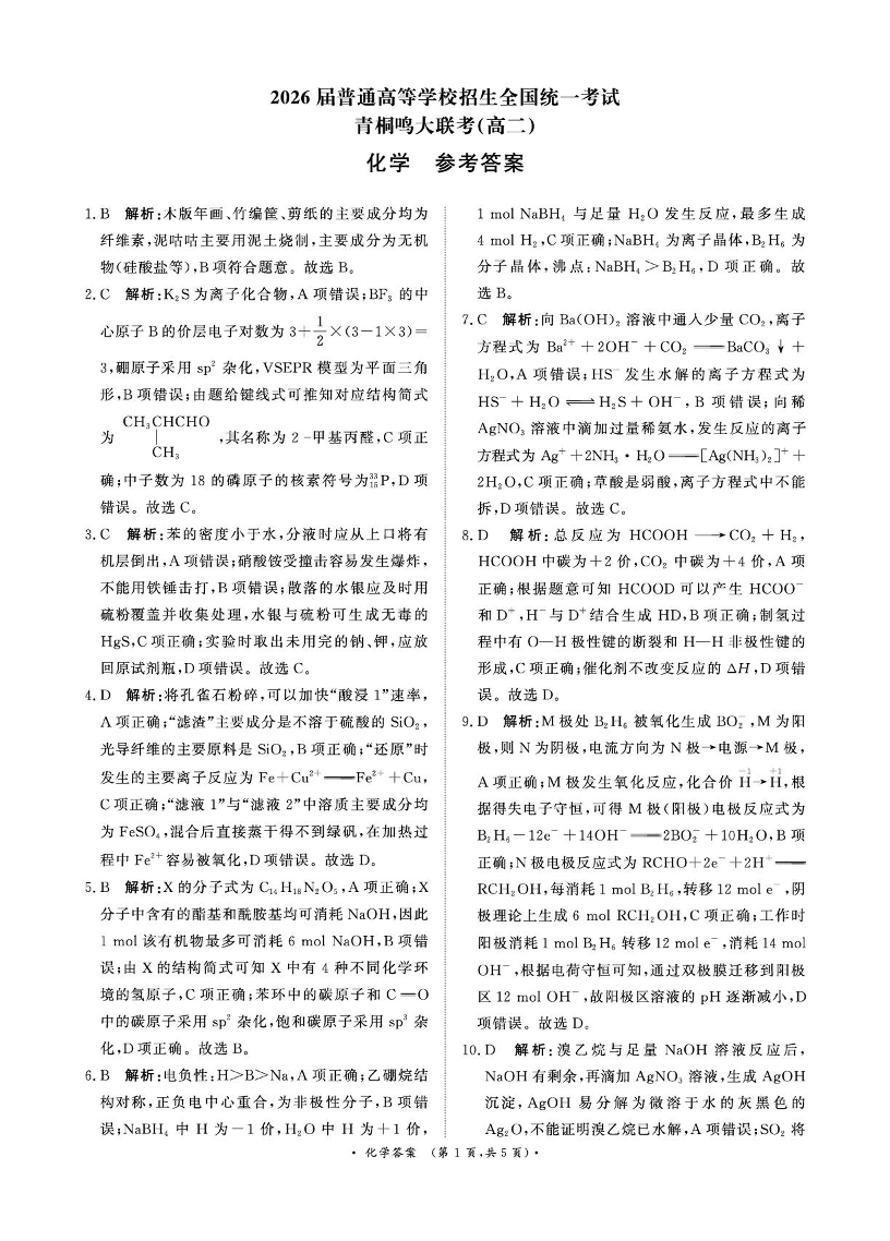 河南省青桐鸣大联考2025年6月高二下学期月考 化学答案.pdf