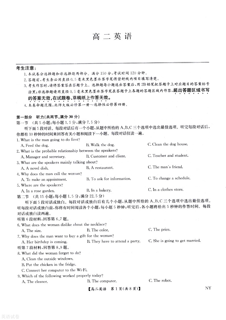 河南省南阳市九师联盟2024-2025学年高二6月期末考试 英语试题(含答案).pdf
